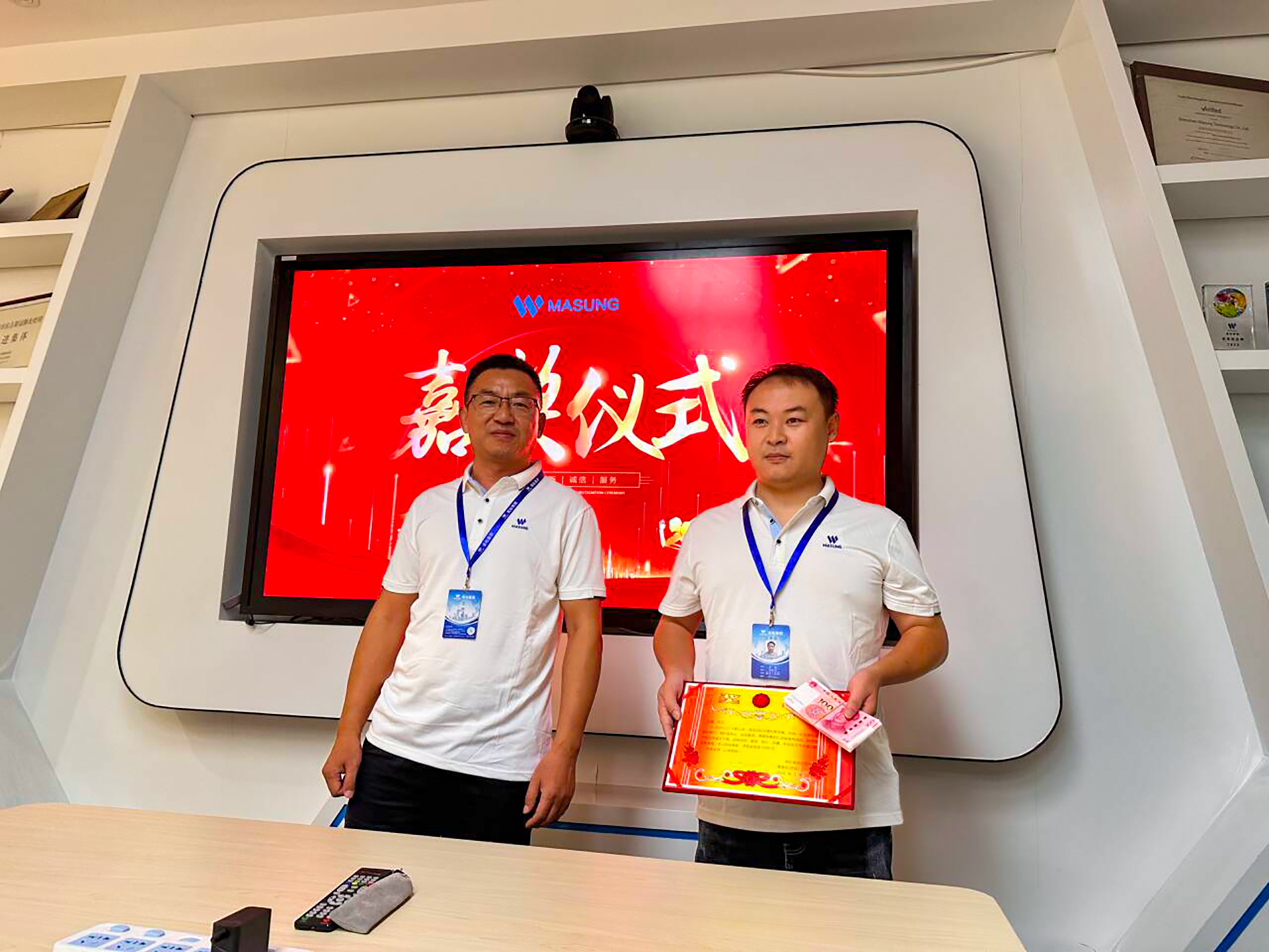 最后,董事長陳斌先生也作了發(fā)言并寄予大家厚望。他說:在充滿競爭與挑戰(zhàn)的商業(yè)世界里,唯有不斷突破自我、勇于創(chuàng)新,才能掌握未來的主動權(quán)。在這段時間里看到,鄧敏表現(xiàn)出極強(qiáng)的積極性和責(zé)任感。他不斷學(xué)習(xí)行業(yè)知識、市場動態(tài),提升自身素質(zhì),用充滿激情的工作態(tài)度影響著團(tuán)隊(duì)的每一位成員。面對困難和挫折,他堅(jiān)持不懈,迎難而上,用刻苦勤懇的精神感染我們身邊的每一個人。正是這份不畏艱難、勇于創(chuàng)新的精神,為他贏得了客戶的信任,也為公司贏得了實(shí)實(shí)在在的業(yè)績。希望全體銷售人以他為榜樣,在工作中保持學(xué)習(xí)熱情,勇于迎接挑戰(zhàn),加大拓展新行業(yè)新領(lǐng)域,共同推動公司的發(fā)展,也能創(chuàng)造更高的個人收益!陳董還表示,希望所有銷售人走出去,代表美松代表美松能量,讓美松品牌masung、美松價值、美松平臺擁有的硬件+軟件+耗材服務(wù)、美松技術(shù)研發(fā)專精能力、美松打印機(jī)掃描儀產(chǎn)品、美松定位不僅小票據(jù)打印掃描外還有熱轉(zhuǎn)印大打印、美松規(guī)模實(shí)力等附加價值,傳遞出去,能為客戶創(chuàng)造更多的價值,與客戶共同發(fā)展。