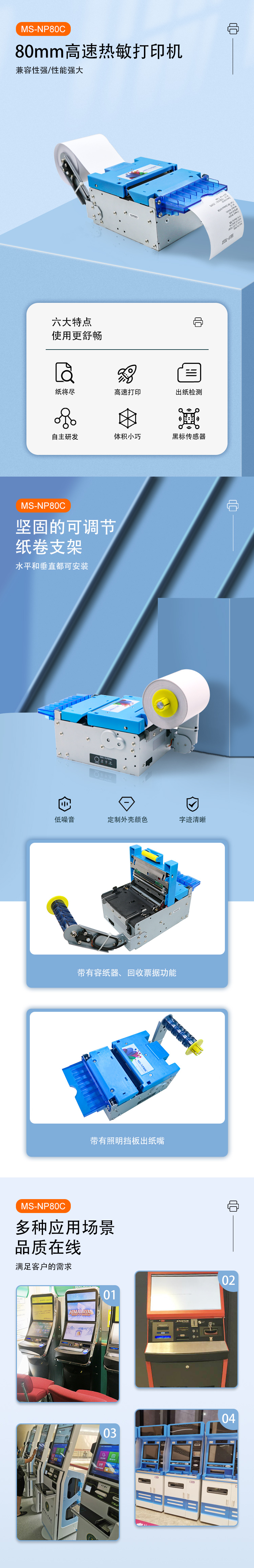 嵌入式打印機(jī)介紹:這款嵌入式打印機(jī)是帶容紙器的80mm熱敏打印機(jī),就是打印出來的熱敏紙無人拿走可自動收回?zé)崦艏埖拇蛴C(jī),智能環(huán)保,自動回收,功能強(qiáng)大,與熱敏打印機(jī)MS-NP80A一樣,熱敏紙支架可圍繞打印機(jī)上下旋轉(zhuǎn)180°,高速打印,支持標(biāo)簽打印,黑標(biāo)打印和熱敏紙打印,配有專利技術(shù)防堵防拽出紙嘴,減輕出紙不順暢的問題,提高用戶體驗(yàn),減輕維護(hù)成本。