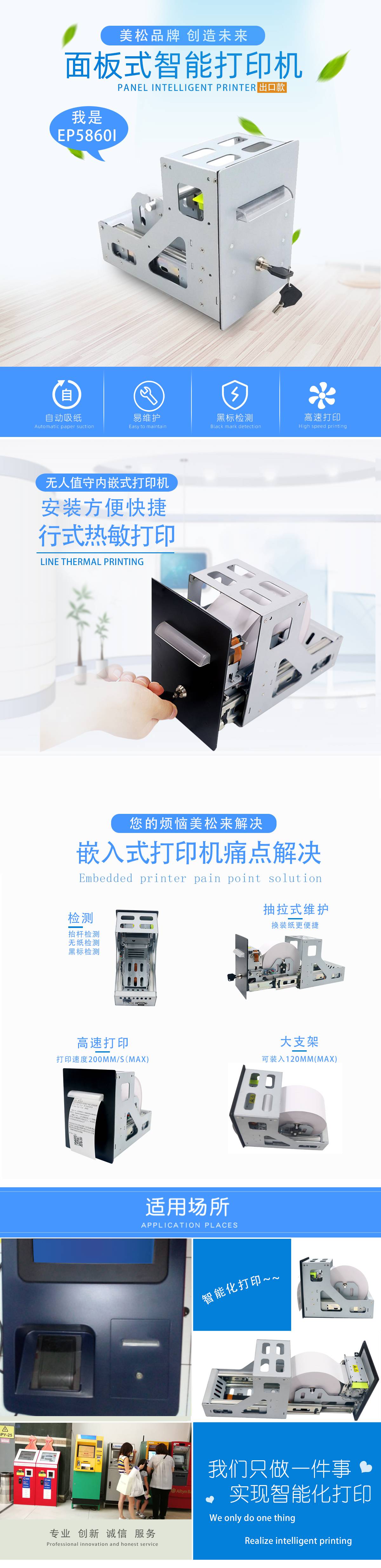 美松MASUNG自主研發(fā)58mm自動(dòng)切紙熱敏打印機(jī) 1.抽拉式維護(hù),全/半切,換紙方便 2.開(kāi)關(guān)鎖,鑰匙開(kāi)門(mén)安全管理 3.專用的塑料出紙口,使安裝維修更方便快捷 4.黑標(biāo)檢測(cè)功能,打印黑標(biāo)紙,打印速度快 5.串口RS232/TTL以及USB可供選擇,并提供全面的軟件指令及簡(jiǎn)潔的驅(qū)動(dòng)程序 6.在儀器儀表,超級(jí)市場(chǎng),便利店,郵政,銀行,煙草專賣,公用事業(yè)抄表,移動(dòng)警務(wù)系統(tǒng),移動(dòng)政務(wù)系統(tǒng)等各個(gè)行業(yè)使用