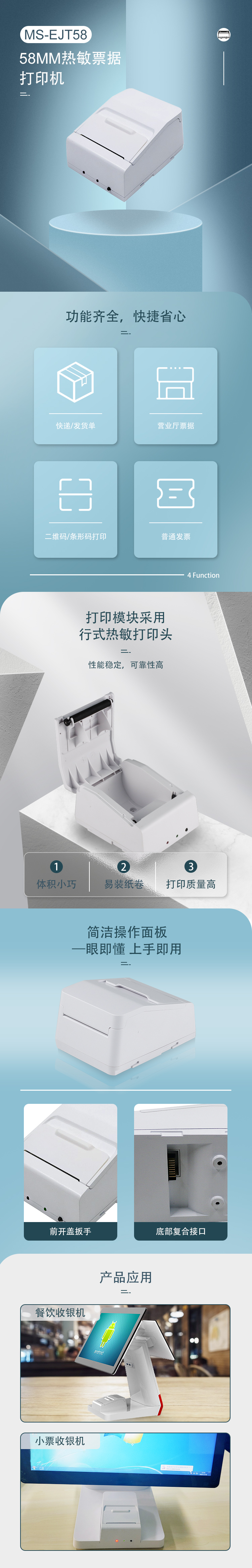 美松(MASUNG)MS-EJT58打印模塊采用行式熱敏打印頭, 它具有高速打印、噪聲低、可靠性強、打印質(zhì)量高、切紙厚度大、結(jié)構(gòu)小巧等特點, 使安裝維修更方便快捷。
