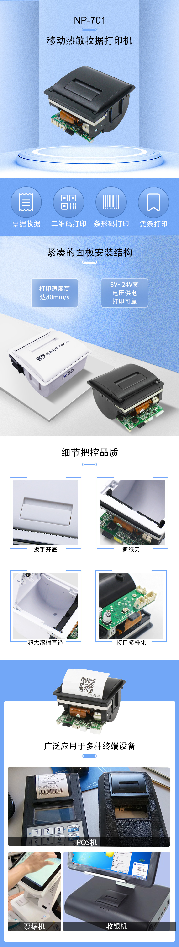 美松MASUNG自主研發(fā)58mm熱敏打印機 1.接口形式:串口(Ver02版本只支持TTL,Ver03版本支持RS232/TTL),USB 口 2.驅(qū)動支持: XP /Win7 /WIN8 (32bit 和 64bit)/win 10 3.打印速度:最高可達80mm/s 4.具有噪聲低、可靠性強,結(jié)構(gòu)小巧、操作簡單、易裝紙等特點 5.8V~24V寬電壓供電 6.弧面式設(shè)計確保紙卷大,嵌入體積小 7.醫(yī)療、檢測、零售等行業(yè)的自助終端打印設(shè)備