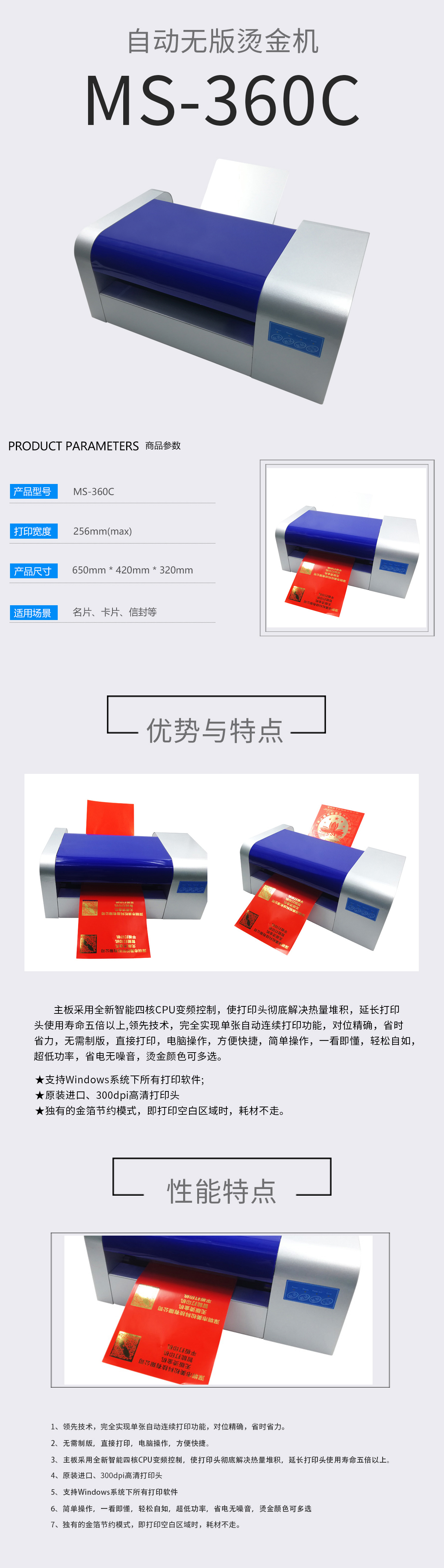 美松數(shù)碼無(wú)版燙金印花機(jī) 1.完全實(shí)現(xiàn)了單張自動(dòng)進(jìn)紙功能,省時(shí)又省力 2.直接usb,U盤輸出,無(wú)需制版直接打印電腦操作方便快捷 3.可連續(xù)打印卷材,即打即用,省時(shí)省力 4.全新智能四核CPU變頻控制,使打印頭徹底解決熱量堆積,延長(zhǎng)打印頭使用壽命五倍以上