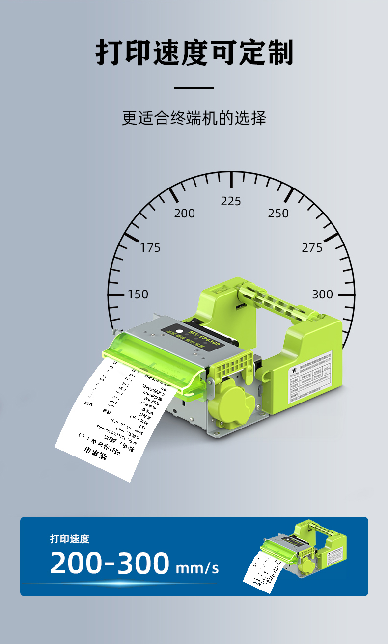 以“清新綠”作為主色新一輪創(chuàng)新的美松特色產(chǎn)品上市,在顏色上凸顯清新脫俗的生命力和綠色環(huán)保低碳的生活理念,讓人耳目一新; 在高效率打印技術(shù)上也突破了以往的打印速度,高配版本達(dá)到300mm/s, 可打印80mm的熱敏紙卷,具有100mm的紙卷寬度 打印頭側(cè)翻蓋設(shè)計,維護(hù)簡單; 增加防堵紙檢測傳感器等功能,打印工作將故障排除在千里之外; 搭配100毫米直徑的紙卷,減少換紙頻率; 優(yōu)化外觀設(shè)計,選擇優(yōu)質(zhì)圓潤的塑膠外殼,操作使用更加安全可靠;