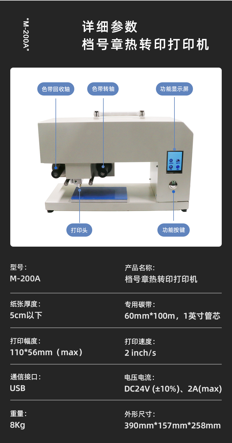 1.專業(yè)檔號章打印 2.卷皮卷宗打印專用 3.打印自動編號,省心省力 4.彩色顯示屏控制 5.打印內(nèi)容長久保存不褪色 6.碳帶熱轉(zhuǎn)印技術(shù)