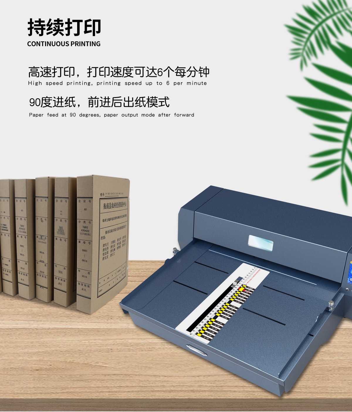 美松MASUNG自主研發(fā)A3+標(biāo)準(zhǔn)檔案盒封面打印機(jī) 1.專業(yè)打印牛皮紙,證件內(nèi)頁(yè),無(wú)酸紙檔案盒 2.對(duì)接API,EXCEL,ERP等數(shù)據(jù)庫(kù)專業(yè)的編輯軟件,自定義打印 3.USB連接操作簡(jiǎn)單,耗材成本低,長(zhǎng)久保存 4.智能打印,整齊規(guī)范化,助力智慧辦公