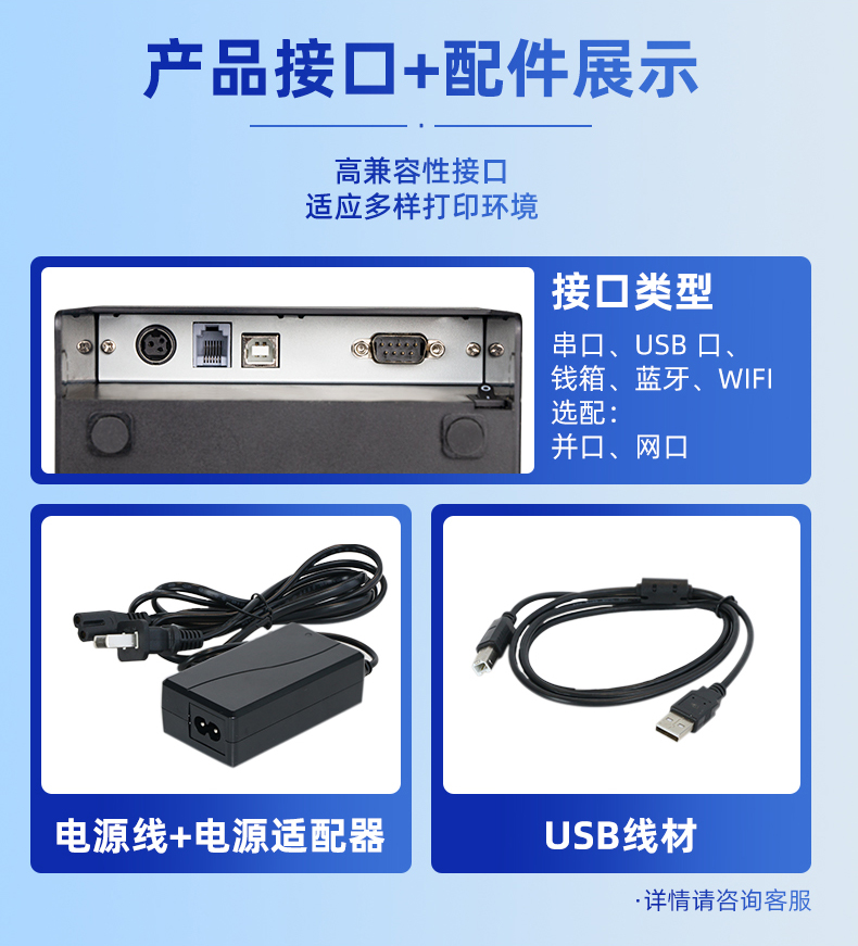 MD80I是一款高顏值的可桌面也可壁掛的票據(jù)打印機(jī)。MD80I外形四四方方的,圓潤一體設(shè)計、簡于外,精于內(nèi)。流線造型,外觀簡潔大方。顏色搭配顯得更加干凈整潔,可內(nèi)嵌于一些自助ai設(shè)備上,也可直接進(jìn)行使用。MS-MD80I是一款全能的桌面式壁掛式票據(jù)打印機(jī),適用于零售商超、中小電商、倉儲物管、影院娛樂等行業(yè)領(lǐng)域,支持簡體/繁體、英/日/韓文多種國際語言,新零售、跨境電商、影院更適合。MS-MD80I擁有超高速打印速度,采用高級強(qiáng)勁機(jī)芯,打印速度可高達(dá)250MM/S成為市面上同類產(chǎn)品中快速打印的佼佼者,清晰穩(wěn)定與高速皆可兼得帶來顧客滿分體驗。MS-MD80I擁有豐富的可選接口,支持RS232串口、USB、網(wǎng)口,可選配藍(lán)牙、WiFi等接口、同時支持24V錢箱接入、滿足不同的連接需求。專業(yè)黑標(biāo)定位功能,前出紙打印,無線連接,藍(lán)牙接口連接,WiFi接口連接,USB連接,打印機(jī)外殼材質(zhì)高端,內(nèi)置機(jī)芯打印速度快。