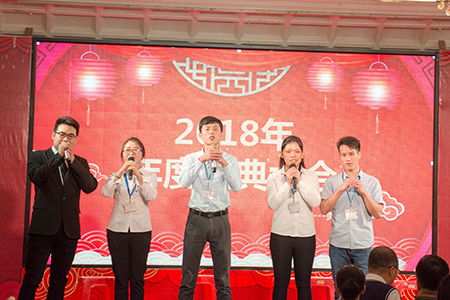 隨著陳董事長(zhǎng)的開幕致詞,精彩的節(jié)目正式拉開帷幕!美松各部門都分別準(zhǔn)備了精彩的節(jié)目,首先是研發(fā)部門帶來的勁爆舞蹈,在過去的一年中,研發(fā)部門發(fā)揮著企業(yè)發(fā)展創(chuàng)新的關(guān)鍵作用,在舞臺(tái)上同樣給大家?guī)矶恳恍碌母杏X。資材部門的《公司明天會(huì)更好》,他們用朗朗上口的三句半道出企業(yè)歷年來發(fā)展歷程以及公司未來發(fā)展的美好期盼。期間不乏一些平日里的隱藏高手,組裝部的《廣東愛情故事》《成都》,二曲唱完,余音繞梁,不愧為美松歌神。精彩輪番上演,掌聲根本停不下來! 內(nèi)容百花齊放,笑點(diǎn)不斷,掌聲四起,把年度盛典火熱的氣氛渲染的更加濃烈!