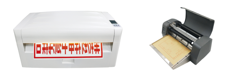 美松熱轉印打印機主要應用于標識打印機(下圖左)和卷宗卷皮、檔案袋、檔案盒封面打印機(下圖右)兩大類,