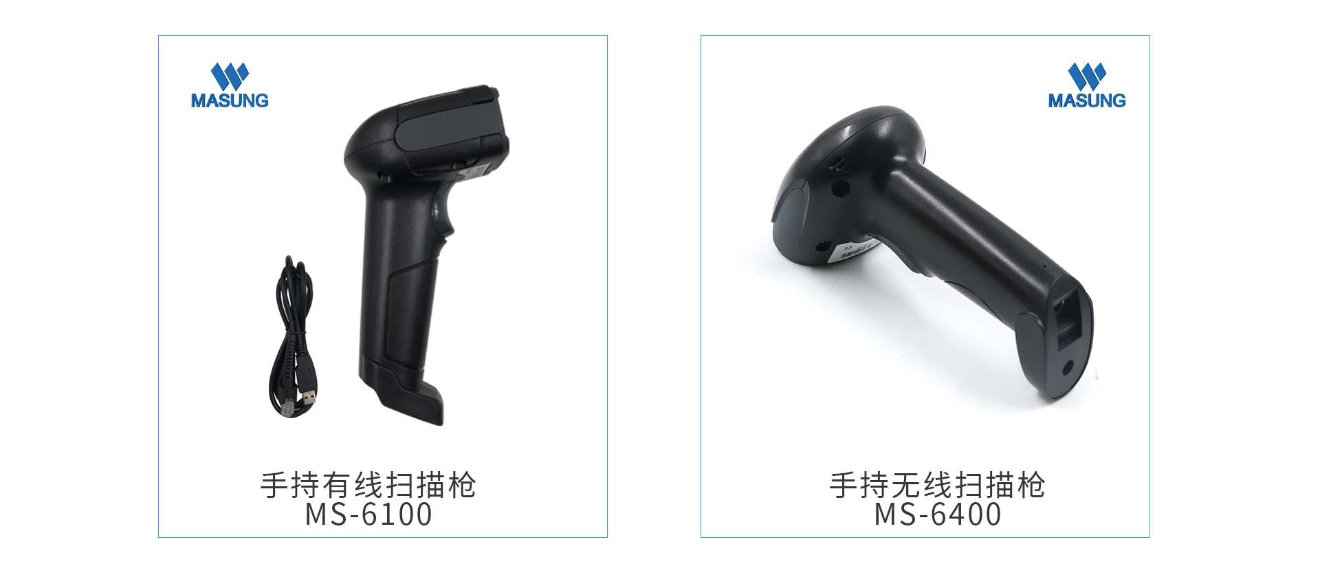手持式:通常以二維碼掃描槍形式出現(xiàn)??梢話呙鑀DF417、QR碼、GM碼二維碼的條碼掃描槍,如下圖是國(guó)內(nèi)品牌美松MASUNG生產(chǎn)的手持式二維碼掃描槍。