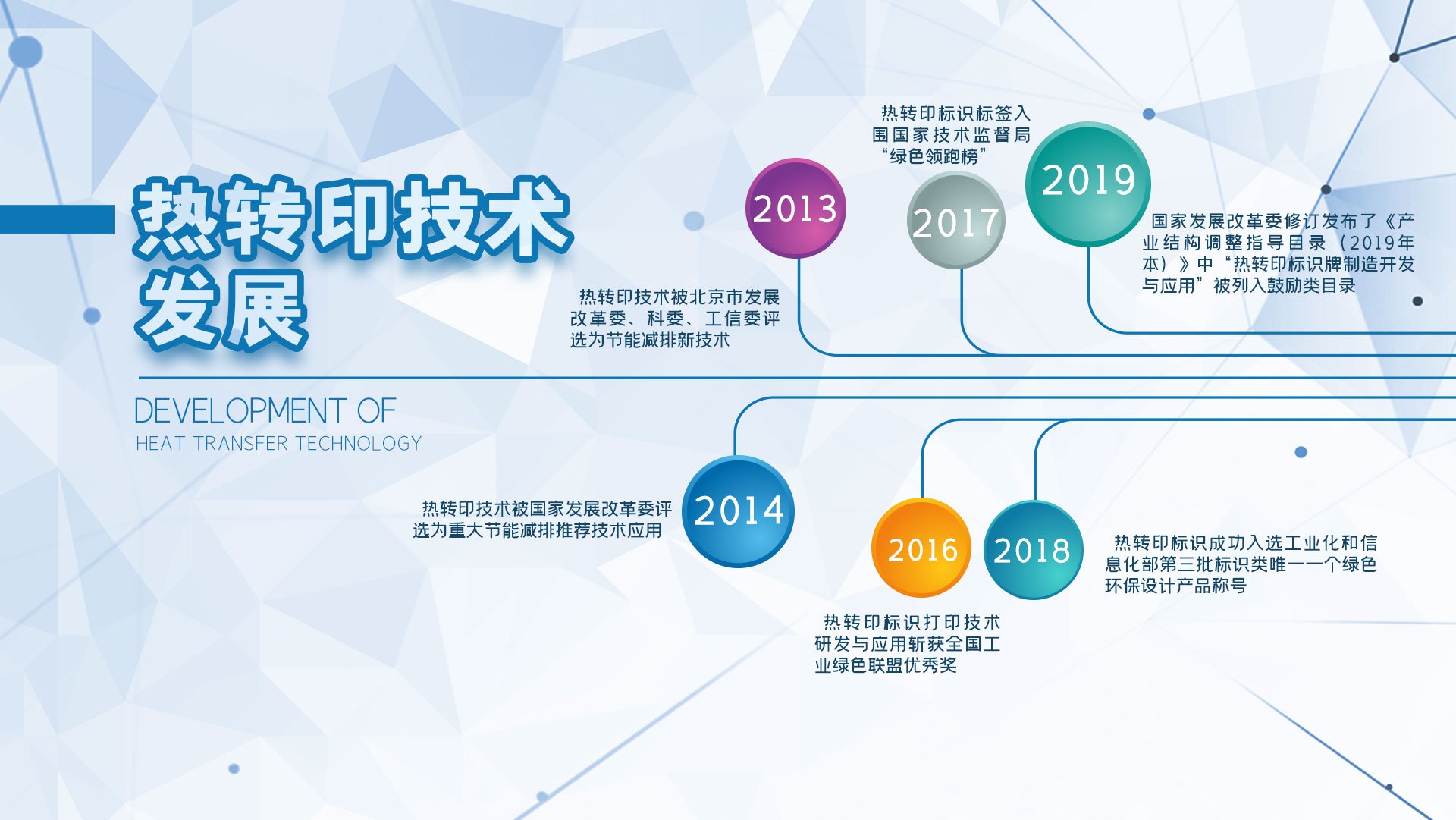 2018年熱轉(zhuǎn)印標識在工業(yè)化和信息化部第三批標識類中成功獲取唯一的綠色環(huán)保設(shè)計產(chǎn)品稱號;