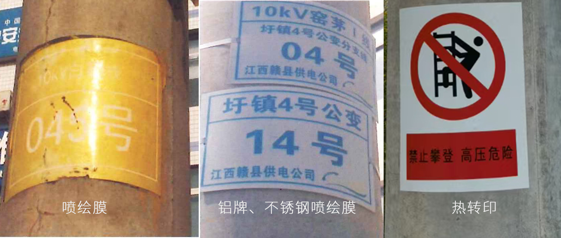 熱轉(zhuǎn)印標(biāo)識憑借其低成本、低功耗和零污染的特點,越來越受到標(biāo)識行業(yè)的認(rèn)可。下面就來對比下噴繪膜、鋁牌和不銹鋼噴繪膜、熱轉(zhuǎn)印這三種方式制作標(biāo)識的差異對比。