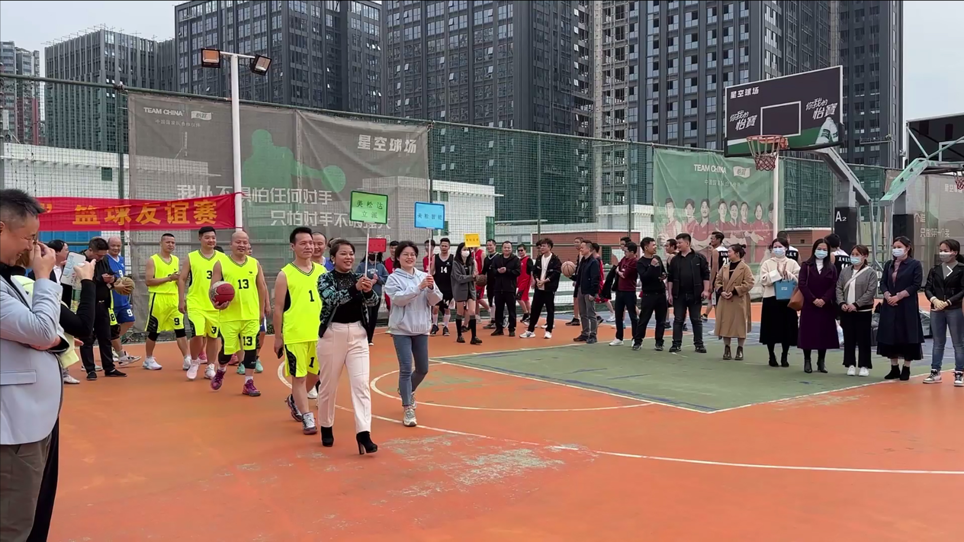 下午14:00,在總經(jīng)理廖偉先生的開(kāi)幕致詞下,隨著主持人的一聲“第七屆美松杯籃球賽正式開(kāi)始”,分別由美松科技、美松智能、美松達(dá)&立派、美松友商組成的4支球隊(duì),運(yùn)動(dòng)員踏著《義勇軍進(jìn)行曲》入場(chǎng),并宣誓發(fā)言。其中美松友商隊(duì)運(yùn)動(dòng)員代表天夢(mèng)者總經(jīng)理鐘文先生,集友商隊(duì)各運(yùn)動(dòng)員代表所屬公司名組成的激情滿(mǎn)滿(mǎn)的賦詩(shī)一首: