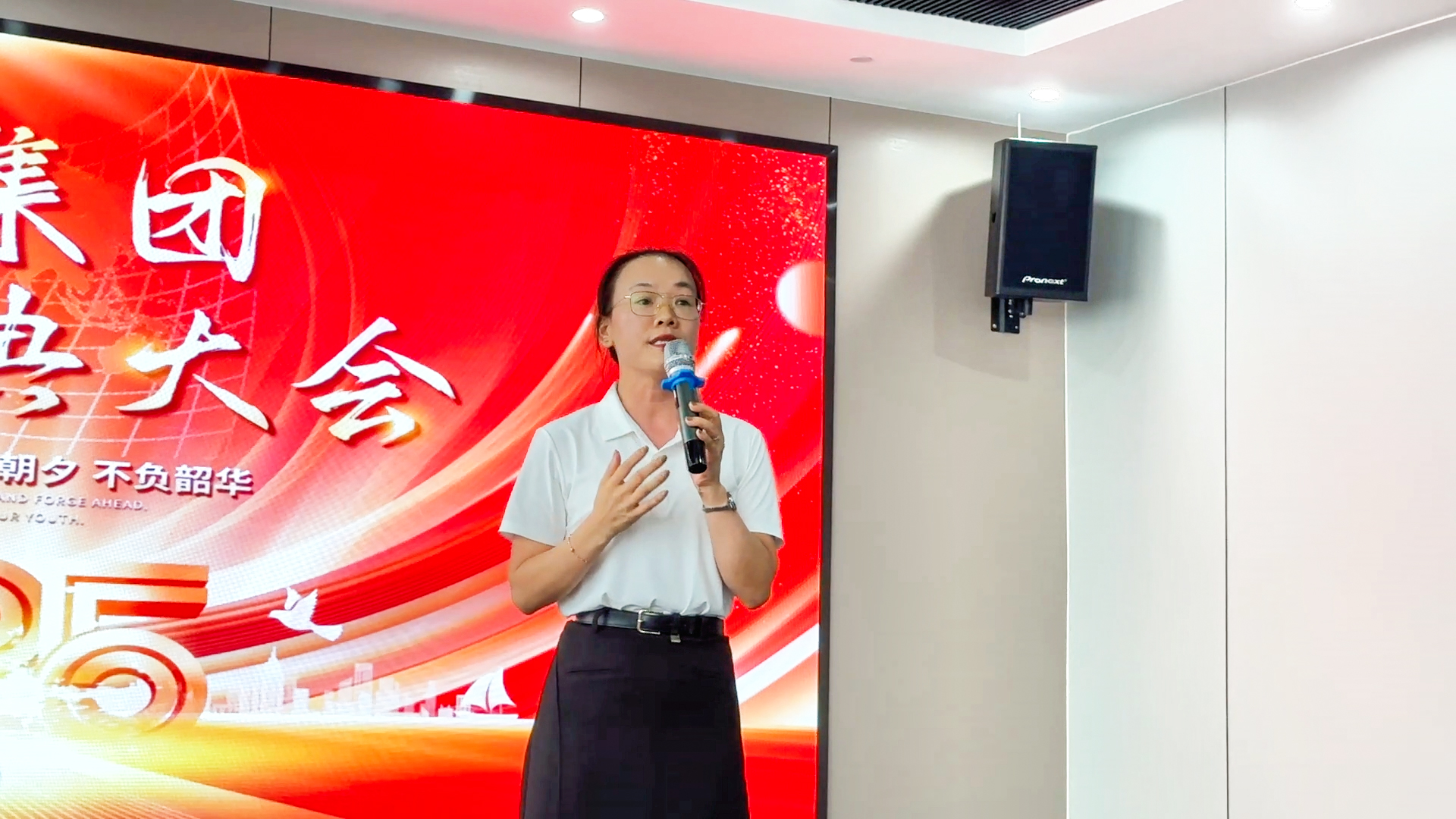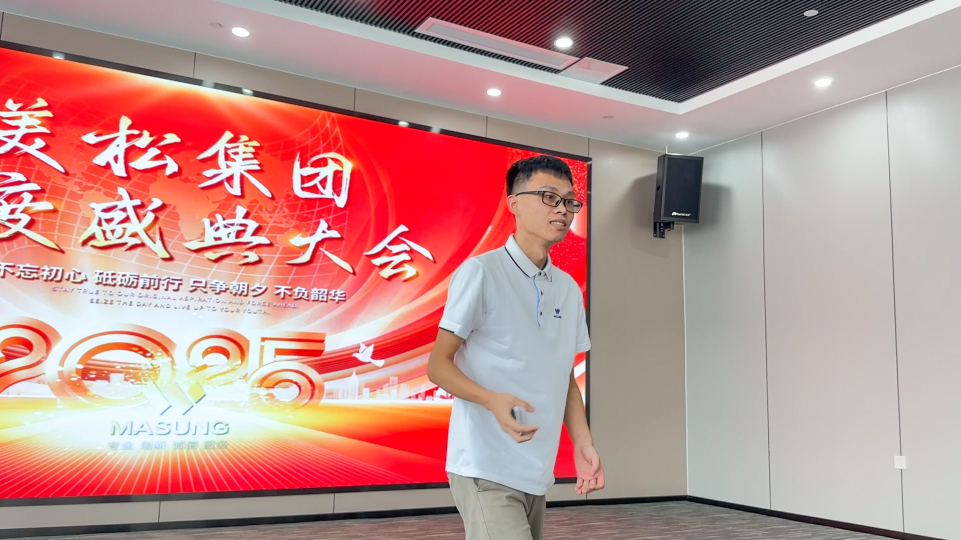 在第19個(gè)節(jié)目表演結(jié)束后評(píng)委緊張的打分間隙,舞臺(tái)聚焦落在了美松集團(tuán)總經(jīng)辦coco身上,她的成長(zhǎng)故事更是點(diǎn)燃全場(chǎng)。這位在美松深耕15年的老員工,用歸屬感,價(jià)值感與成長(zhǎng)空間與美松共生,這份榮譽(yù)與歲月的積淀,使她的發(fā)言格外具有穿透力。她以真誠(chéng)的語氣回顧自己從初入美松的青澀,到如今肩負(fù)重要管理職責(zé)的自信旅程;也見證了公司從10來人的團(tuán)隊(duì)發(fā)展至今,在行業(yè)內(nèi)具有一定影響的力量;從點(diǎn)滴崗位成長(zhǎng)到跨部門協(xié)同推進(jìn),從個(gè)人素養(yǎng)的持續(xù)提升到對(duì)公司愿景的堅(jiān)定擁護(hù),這些分享如同一面鏡子,照見了無數(shù)同事的努力與堅(jiān)持。她動(dòng)情的從“責(zé)任、信任、情懷、堅(jiān)定“四個(gè)維度展開與美松人的成長(zhǎng)節(jié)點(diǎn),也表達(dá)了對(duì)未來的無限期待。只有大家保持初心持續(xù)學(xué)習(xí)才能將美松MASUNG品牌,美松的打印機(jī)產(chǎn)品,美松的完美服務(wù)帶向新的高度!最動(dòng)人心弦的一幕,是她對(duì)“認(rèn)同感與共同成長(zhǎng)”的真摯呼喊——愿越來越多的美松人愿意和她一樣,認(rèn)可美松、信任美松、與美松共同成長(zhǎng)。當(dāng)coco問起現(xiàn)場(chǎng)美松人,是否愿意跟她一樣,與美松一起成長(zhǎng),5年,10年,20年,30年時(shí),掌聲雷動(dòng)之中聽到的都是回應(yīng)聲:“好”!