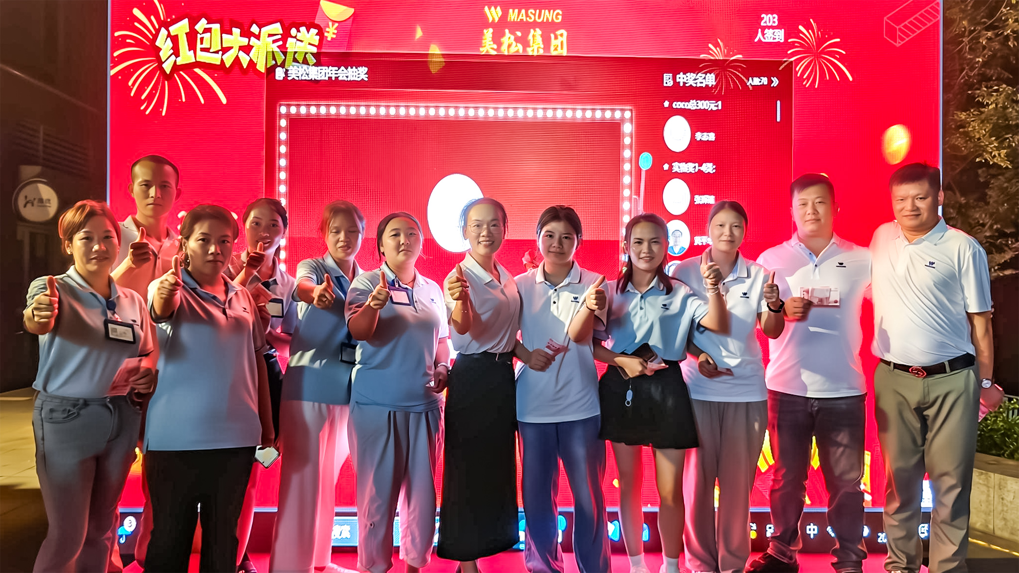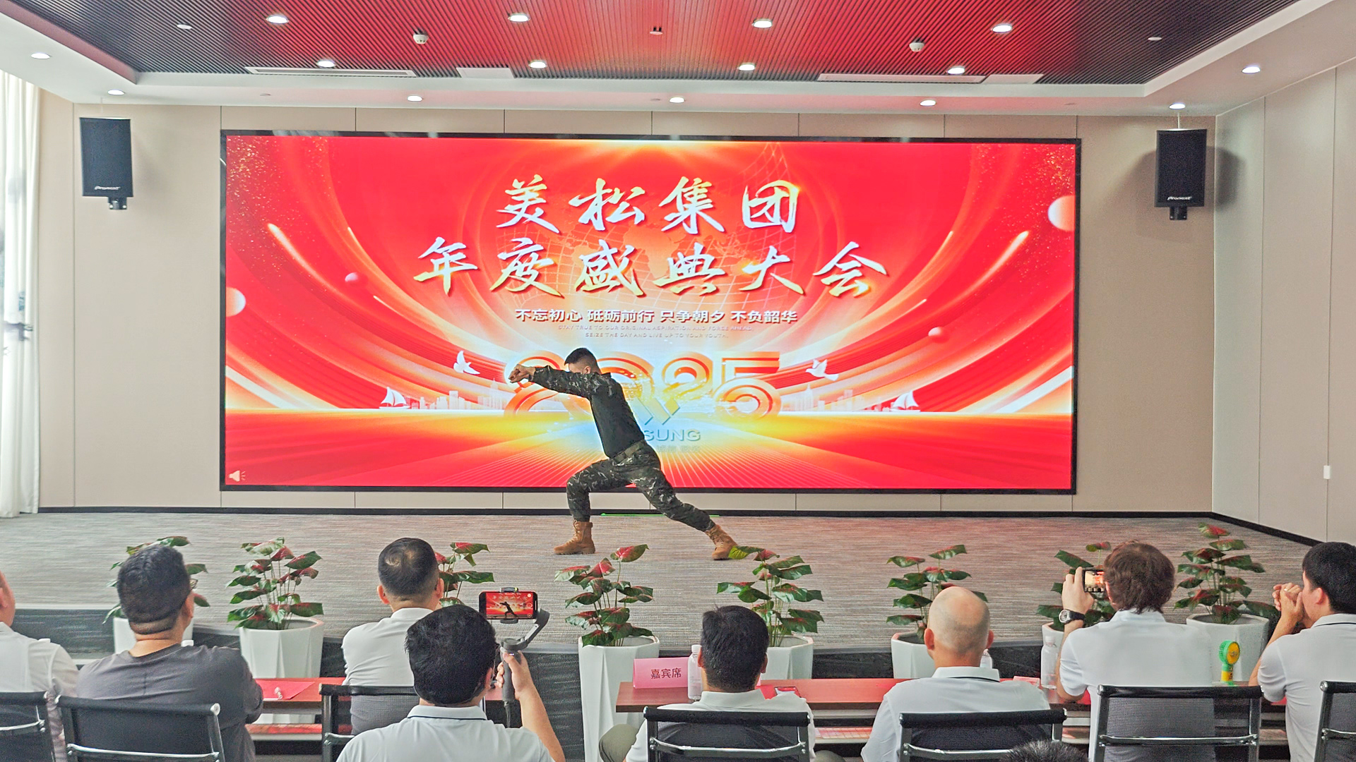 整場(chǎng)節(jié)目表演活動(dòng)都以“成長(zhǎng)”為主線,貫穿美松個(gè)人成長(zhǎng)、美松組織成長(zhǎng)與打印機(jī)行業(yè)成長(zhǎng)三位一體,強(qiáng)調(diào)“專業(yè)、創(chuàng)新、誠(chéng)信、服務(wù)”的美松價(jià)值文化。璀璨舞臺(tái)上,一場(chǎng)跨越時(shí)空的視聽盛宴《無價(jià)烙印與美松傳承》-以負(fù)責(zé)人coco的身份獨(dú)白故事展開的一部震撼的宣傳片,通過光影交織的鏡頭語言,帶領(lǐng)觀眾穿越美松的成長(zhǎng)歷程,19年的風(fēng)雨路程提醒著我們,真正的傳承不是停留在口號(hào),而是在每一天的細(xì)微行動(dòng)中繼續(xù)前行。無論是資深老員工,還是新加入的同事,都將在一起,把夢(mèng)想變成可感知的現(xiàn)實(shí)。以“恒進(jìn)”的步伐,致敬那些日常里追求極致的人;以堅(jiān)定的信念,迎接每一個(gè)新的挑戰(zhàn);因?yàn)橹灰覀兺模貙⒐蠢粘觥敖承蔫T就信賴”的美松品牌內(nèi)核:明天會(huì)更好!隨著音樂的響起,全體美松人都加入了和聲,歌聲中既有對(duì)過往合作的感恩,也有對(duì)未來共贏的期許.“讓我們的笑容充滿著青春的驕傲,為明天獻(xiàn)出虔誠(chéng)的祈禱!”大屏幕同步播放員工們自發(fā)用人體藝術(shù)形式展示的“MASUNG”LOGO珍貴影像,將現(xiàn)場(chǎng)氛圍推向高潮。這不僅是一場(chǎng)藝術(shù)盛宴,更是美松人對(duì)美松的深情告白:“無價(jià)烙印”象征著每個(gè)美松人與美松的深厚情誼;“美松傳承”寓意著未來攜手共進(jìn)的堅(jiān)定承諾。而“無價(jià)烙印與美松傳承”更是我們美松打印人的合作價(jià)值與美松精神。