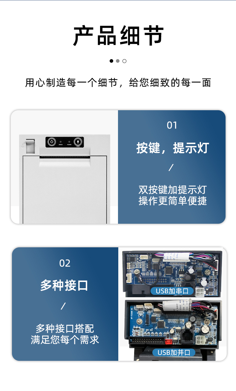 微型打印機介紹:美松根據(jù)微型打印機市場需求,自主研發(fā)一款58mm微型熱敏打印機,這款微型打印機面框兼容80mm打印機尺寸,帶有錢箱接口,收銀系統(tǒng)兼容性好,紙倉空間較大,可以裝60mm直徑紙卷,外觀簡潔大方,耐用不易損壞,適應(yīng)多種場景,滿足微型打印機品牌不同需求。型號為MS-FPT206微型打印機是一款嵌入式微型打印機,不同于POS打印機可以隨身攜帶,嵌入式微型打印機只需要簡單安裝就能實現(xiàn)打印功能的打印模塊,MS-FPT206可嵌入在不同的終端設(shè)備,例如加油站、餐飲收銀機等,微型熱敏打印機是零售、餐飲、娛樂、醫(yī)療、物流等行業(yè)的自助終端設(shè)備理想打印伙伴。