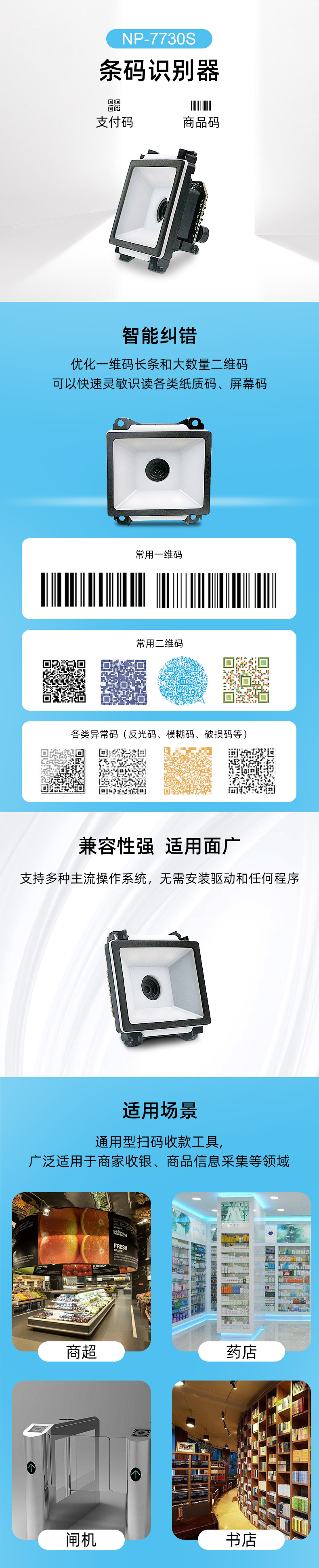 兼容紙質(zhì)條碼、手機(jī)碼、彩色碼讀取