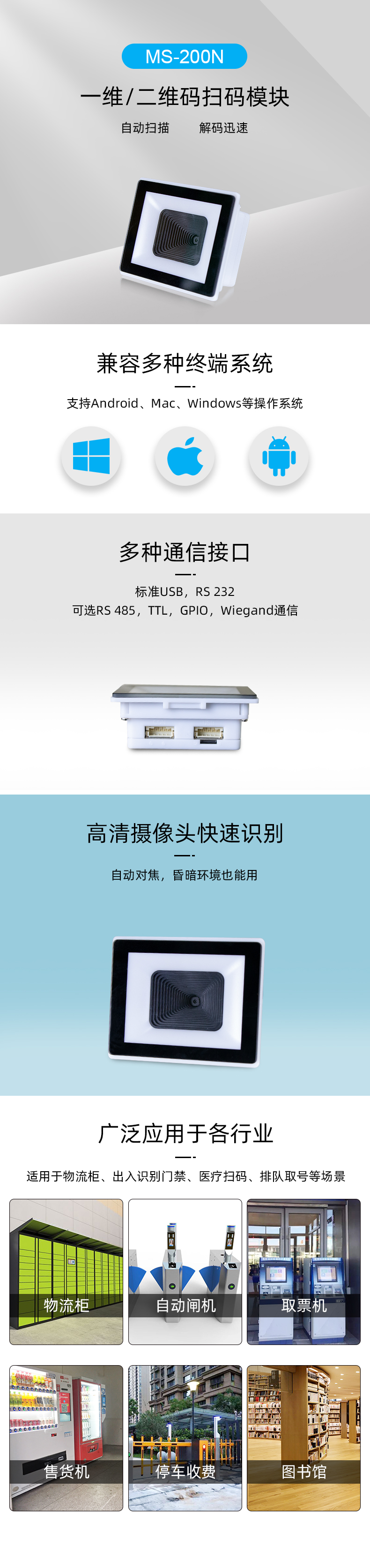 1.領(lǐng)先的解碼技術(shù) 采用自主研發(fā)的核心技術(shù),極速響應(yīng), 2.讀取各種條碼 一維/二維,紙質(zhì)/手機讀碼 3.寬電壓供電 默認(rèn)3.61-5V供電,可選3.3-16V寬電壓電源 4.多種通訊方式 標(biāo)準(zhǔn)USB、RS232; 可選RS485、TTL、GPIO、韋根通訊 5.OCR 讀取 可讀的 OCR-A/B 數(shù)字(可選) 6.NFC 刷卡 可選刷卡模塊可支持13.56Mhz,非接觸式IC讀卡器,支持Type A/B卡
