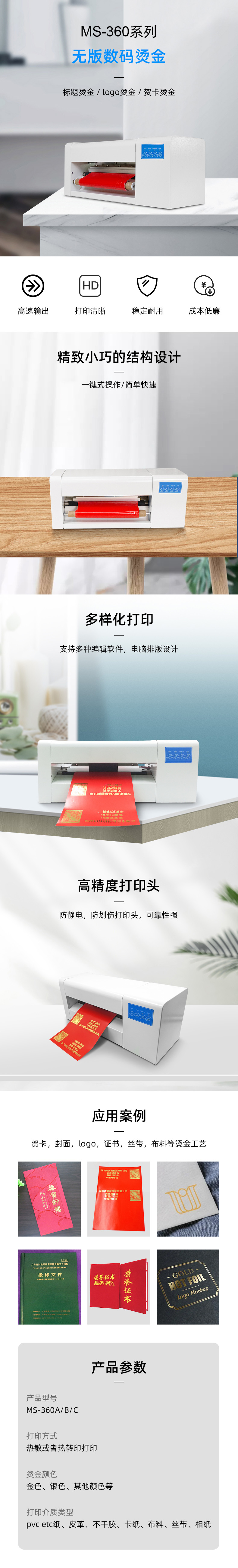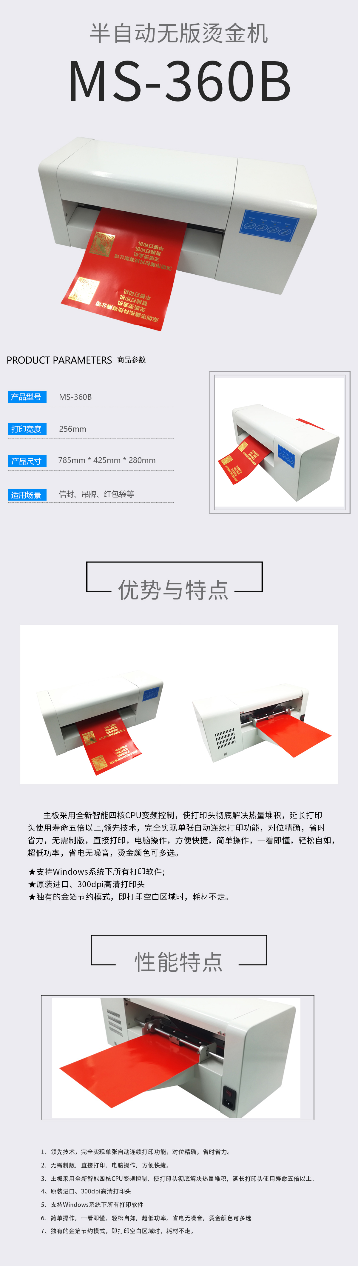 美松數(shù)碼無版燙金印花機(jī) 1.完全實(shí)現(xiàn)了單張自動(dòng)進(jìn)紙功能,省時(shí)又省力 2.直接usb,U盤輸出,無需制版直接打印電腦操作方便快捷 3.可連續(xù)打印卷材,即打即用,省時(shí)省力 4.全新智能四核CPU變頻控制,使打印頭徹底解決熱量堆積,延長打印頭使用壽命五倍以上