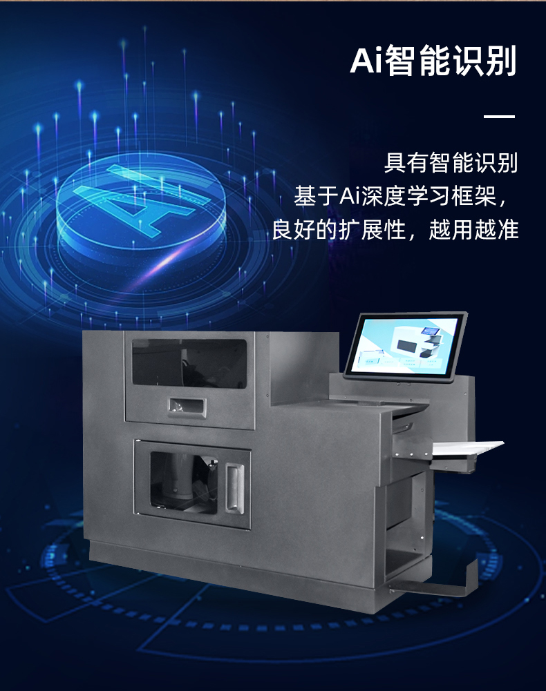 MS-T740頁(yè)碼機(jī) 替代人工打碼,內(nèi)置高分辨率噴墨機(jī),高速,清晰,不沾墨 可觸屏的電腦具有高速處理器,DDR3L 8GB內(nèi)存、SSD128G硬盤(pán)、電容式高亮觸摸屏、預(yù)留網(wǎng)口、USB、COM口等 光盤(pán)存儲(chǔ)刻錄專業(yè)處理軟件 處理過(guò)的文件通過(guò)內(nèi)置軟件可輕松制成光盤(pán)或存儲(chǔ)至指定位置。 Ai智能識(shí)別