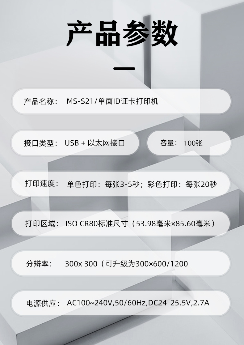 MS-S21_單面ID卡證卡打印機(jī)體型輕巧,證卡打印可靠簡(jiǎn)單采用高解析度熱升華彩色打印技術(shù)更好的卡片連續(xù)印刷能力,省時(shí)省力操作界面設(shè)計(jì)直觀,輕松上手體型輕巧,維護(hù)方便打印過程噪音低高打印速度引擎 多功能選配模塊,支持各種卡片印刷雙界面芯片卡讀寫模塊非接觸式ID卡讀寫模塊UHF芯片卡讀寫模塊 磁條卡讀寫模塊產(chǎn)品特點(diǎn)機(jī)器小巧輕便單面打印高清彩色打印手動(dòng)單張進(jìn)卡自動(dòng)批量進(jìn)卡