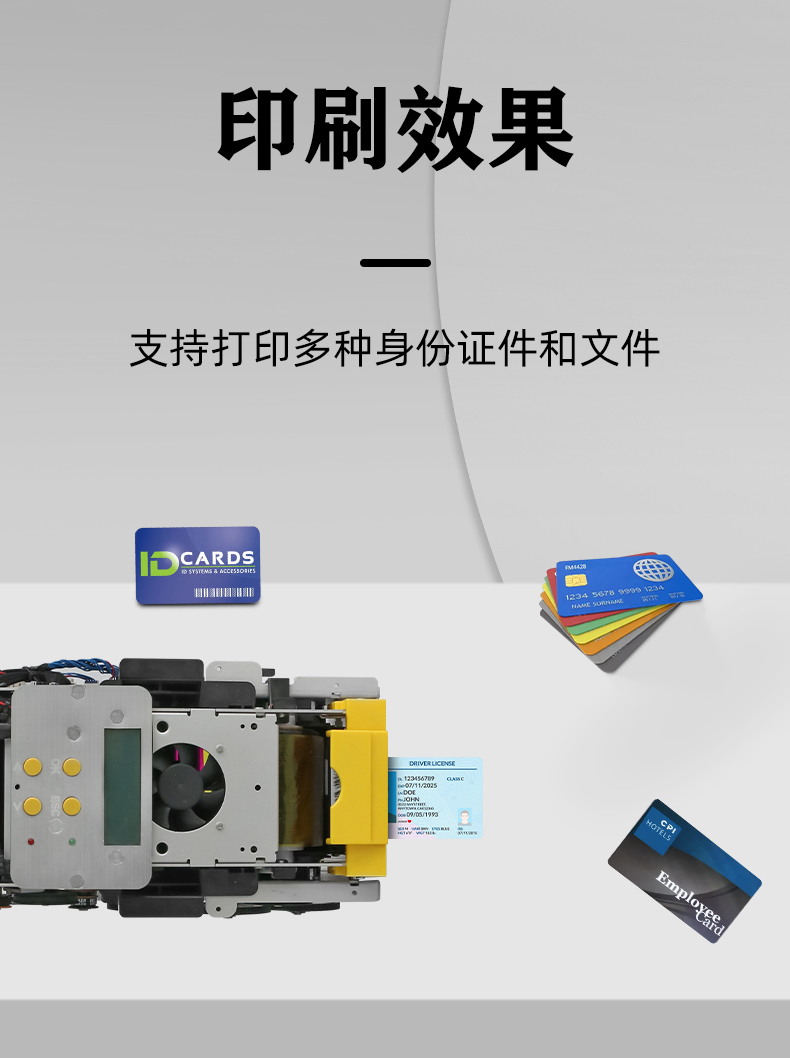 | 打印面積 | ISO CR80(53.98mm×85.60mm)邊到邊打印 |